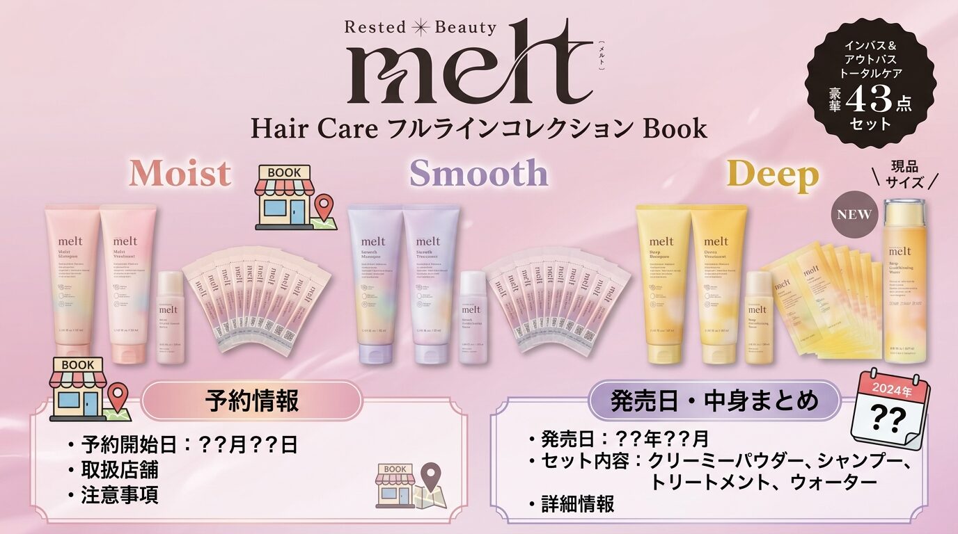 本記事では、melt Hair Care フルライン コレクション Bookの予約先・発売日・中身をわかりやすく解説します。(専門知識は不要です!)