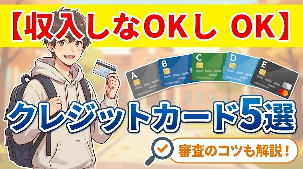 多くの学生向けカードでは、アルバイト収入がなくても申し込み可能です。ただし、親権者の収入や学生の属性(大学名、学年等)が審査に考慮される場合があります。